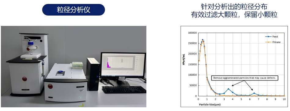 其次,就是基于孔徑分析的定制開發(fā)能力。前文提到過,各家MLCC廠商所用漿料的粒徑分布不同,而我們邁博瑞會使用粒徑分析儀器對漿料進行粒徑分析,從而針對性開發(fā)濾芯結構,可以有效去除有害的大顆粒,保留有用的小顆粒。