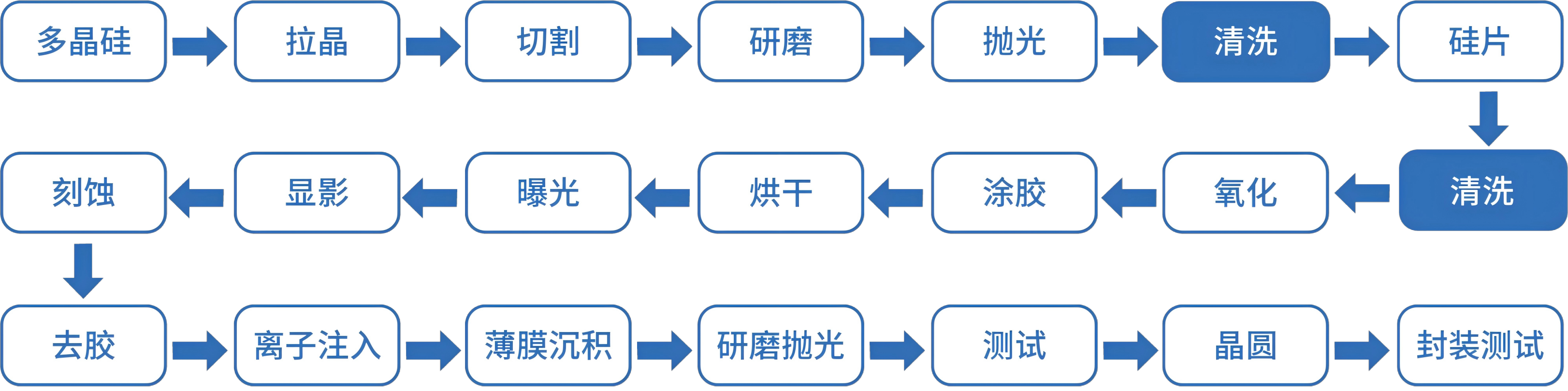 IC制程中,硅片的清洗工藝可以說是極其重要,一塊合格的硅片需要經(jīng)過反復(fù)多次復(fù)雜的清洗步驟,從而去除硅片表面的污染物,而這些污染物都能夠直接或間接的影響著芯片的性能。