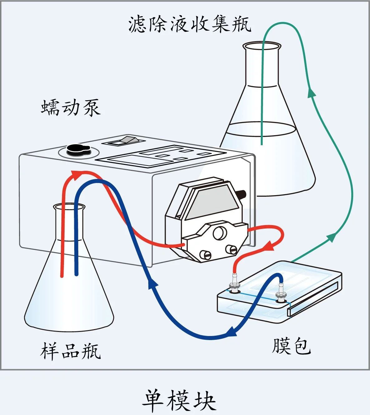 單個(gè)PRISM 50超濾膜包的有效面積為50cm²,可以處理100ml-3L的樣品,并且可以通過(guò)串聯(lián)多個(gè)膜包來(lái)增加處理速度或處理量。PRISM 50超濾膜包還具有獨(dú)特的翻轉(zhuǎn)流路設(shè)計(jì),能夠充分利用膜表面積,提供最大的切向流速度,從而實(shí)現(xiàn)高通量、低吸附、高回收率的超濾效果。
