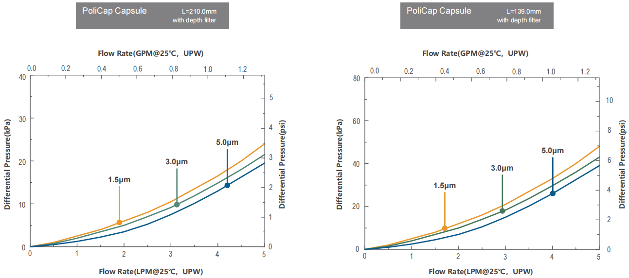 PoliCap終端(POU)緊湊型流量-壓差曲線圖